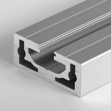 A robust rail with the slot geometry of the 40 base. The slot base is solid in order to accommodate the thread holes. When fixed to walls with dowels, height adjustable shelves can be very easily attached to this extrusion rail.